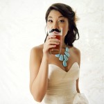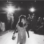 This incredible couple got married at the incredible Lace Factory with the help of some seriously incredible ladies from Ambiance Luxe Wedding Designs. Blue chandeliers mixed with vintage glass bottles hanging from trees? Polka dotted dress and gold sparkly flats? Yes and yes. Awesome.